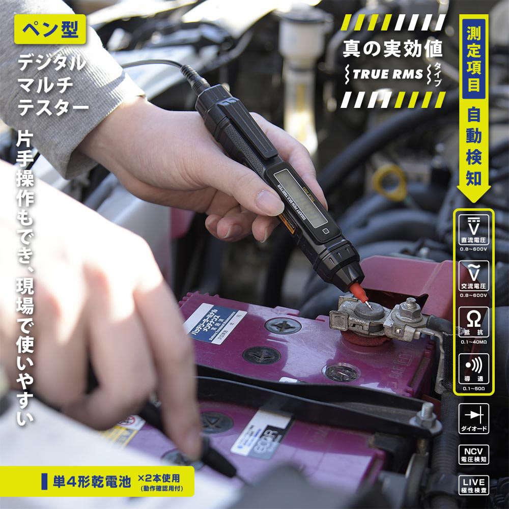 ■ 本体機能:直流電圧、交流電圧、抵抗、導通検査、ダイオード、電圧検知(NCV)、極性検査(ニュートラル/ライブ)