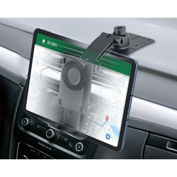 ・ダッシュボードなどの曲面にも貼付けられるマグネット式タブレットホルダーです。