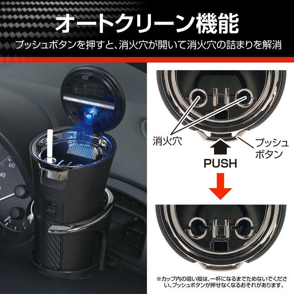 ●ワンプッシュで簡単に開くフタがついており、喫煙時のスムーズな灰捨てをサポートします。