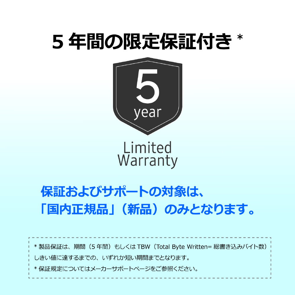 * 限定保証は5年またはTBWのいずれか早い方が保証期限となります。保証の詳細については、同梱の保証書をご確認ください。