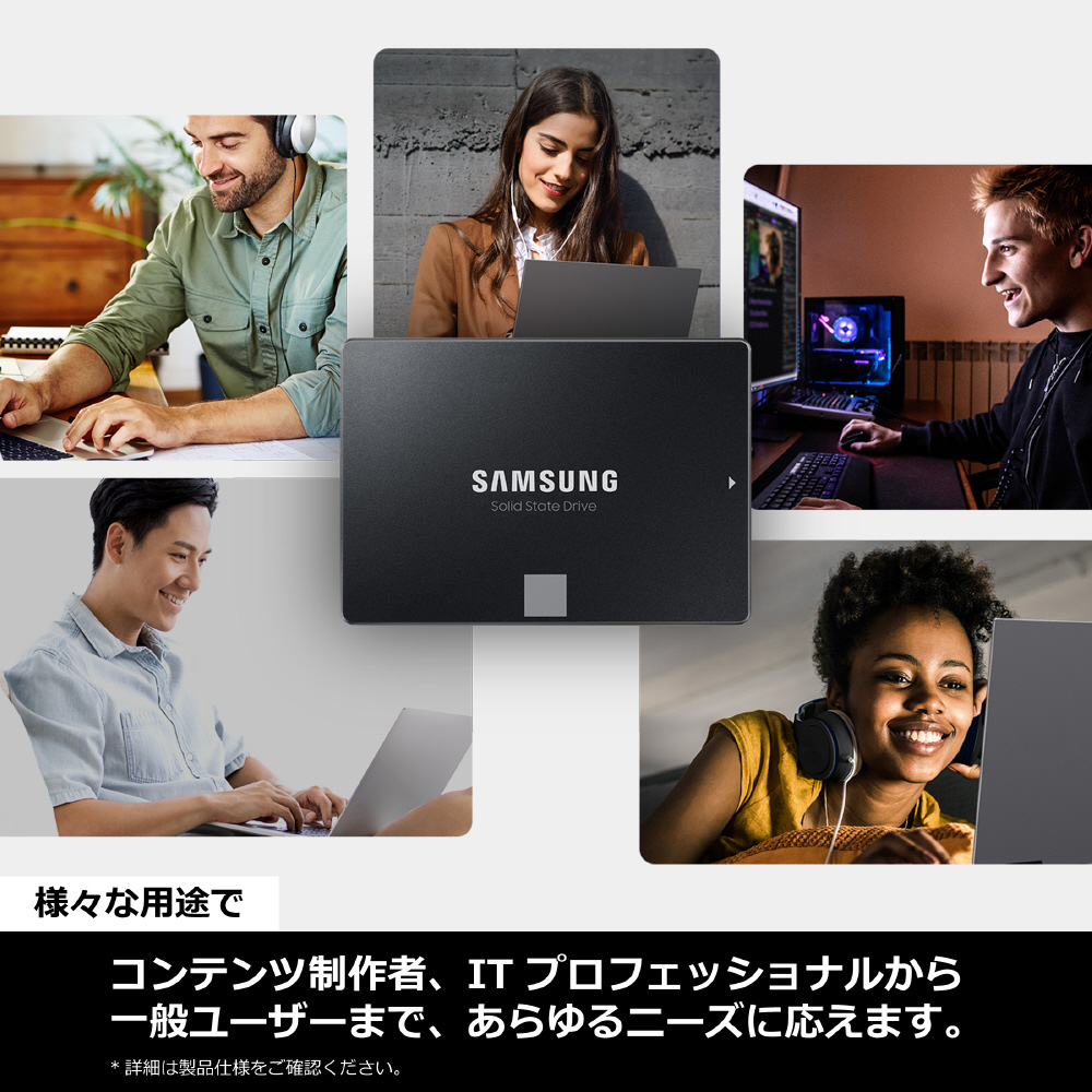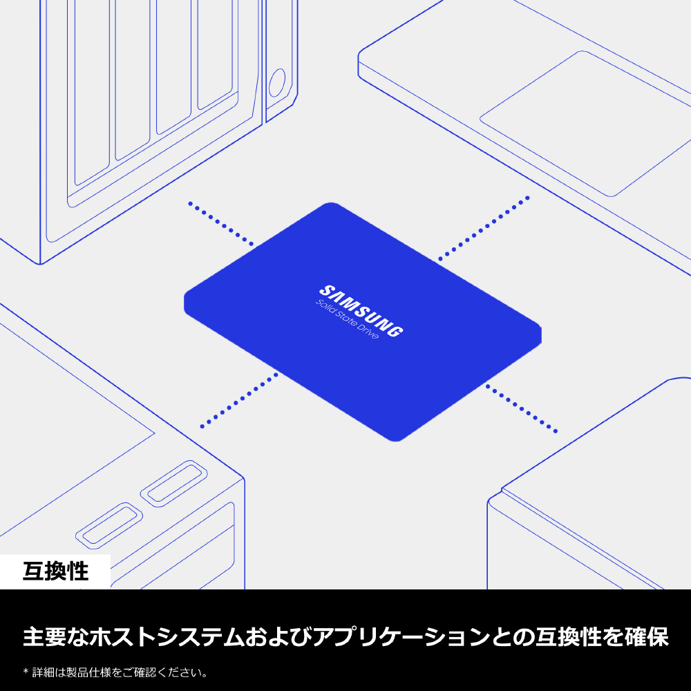* 互換性テストは、Samsung 社内、AMD、MSI、GIGABYTE、Synology、QNAP、Blackmagic Design、ATOMOS で実施されました。