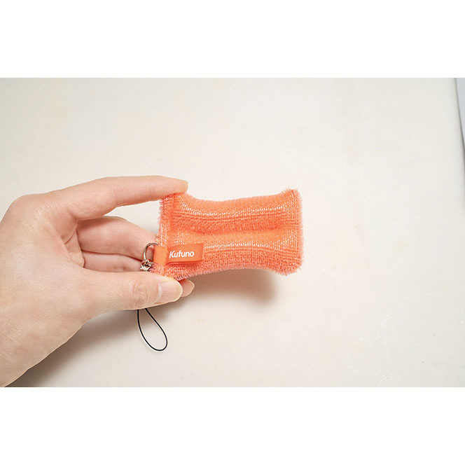ストラップ付きのminiスポンジ。ストラップを外してスポンジとしても使用可能。ブラシスポンジの品質そのままminiサイズのスポンジです。