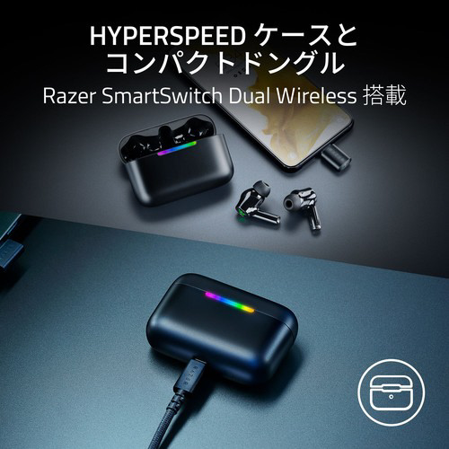 2.4GHzとBluetoothをシームレスに切り替えながら、外出先ではコンパクトで取り外し可能なドングルによりモバイル環境でも高いパフォーマンスを発揮し、PCゲーミング環境では独自のHyperSpeedケースを接続してプレイしながらケースを充電することができます。