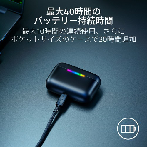 オールインワンの Razer Hammerhead V3 HyperSpeed で、お気に入りのすべてのデバイスに完全な没入感を与えよう。必ずや重宝される、真のワイヤレスマルチプラットフォームゲーミングイヤフォンです。超高速 HyperSpeed Wireless、パワフルな ANC、1 日中使えるバッテリー持続時間で、ゲームへの没入感を高め、新しい世界へといざないます。