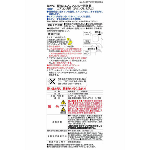 D294 超強力エアコンスプレー消臭 銀 サボンプレミアム
