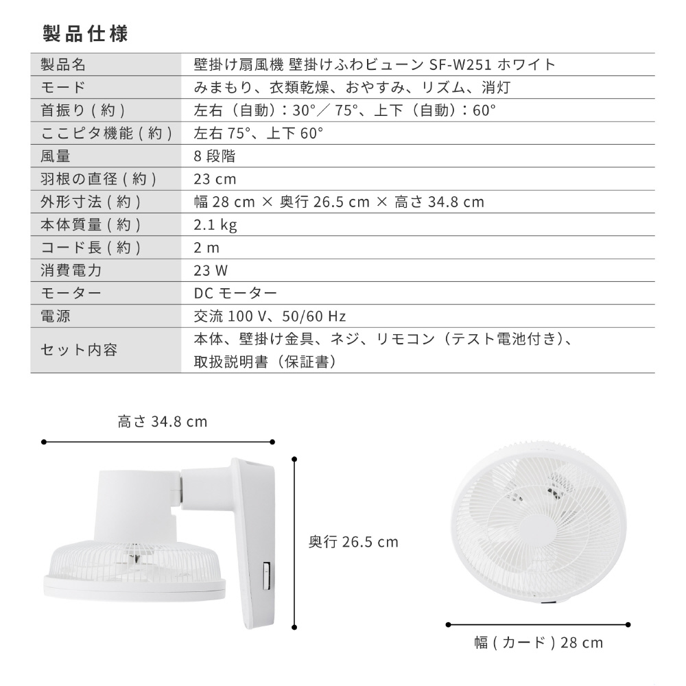 壁掛け扇風機 壁掛けふわビューン ホワイト SF-W251 [リモコン付き]