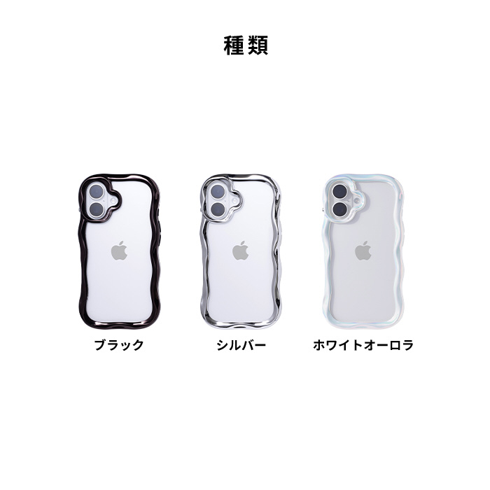 ウェーブデザインと美しい光沢感を備えたクリアケース。