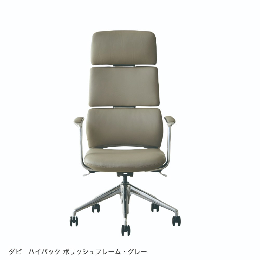 関家具 マネジメントチェア ダビ ハイタイプ グレー アルミポリッシュ 本革 裏面合成皮革 487849 487849