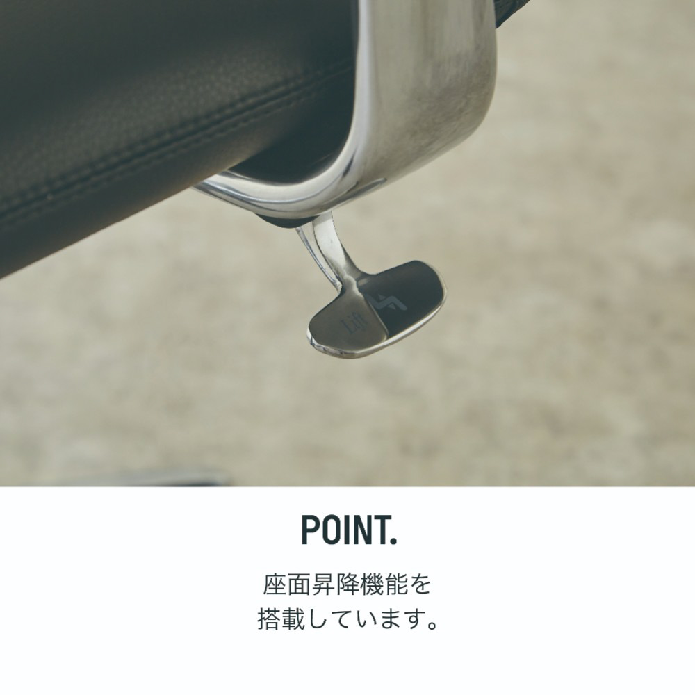 座面昇降、4段階リクライニングロックの機能を搭載。