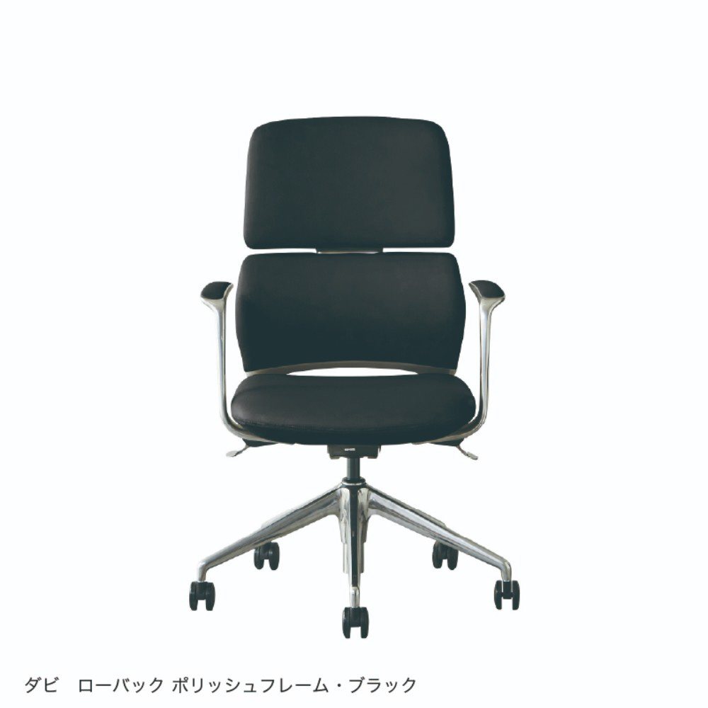 関家具 マネジメントチェア ダビ ロータイプ ブラック アルミポリッシュ 本革 裏面合成皮革 487851 487851