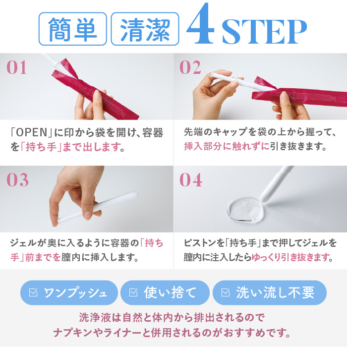 管理医療機器の膣洗浄器です。3種の乳酸菌原料*を配合し、膣内をやさしく洗浄します。