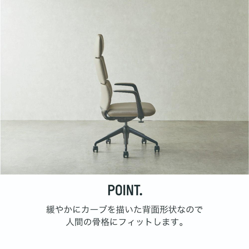 座面と背面の前面には本革を採用し、エグゼクティブなオフィス空間や落ち着きのある書斎に美しく調和します。