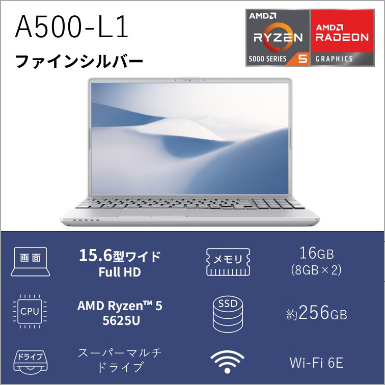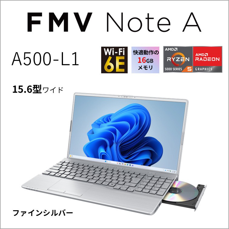 ノートパソコン FMV Note A A500-L1 ファインシルバー FMVA500L1S [15.6型 /Windows11 Home /AMD Ryzen 5 /メモリ:16GB /SSD:256GB /M365 (24か月) or Office 選択可能 /日本語版キーボード /2026年4月モデル]