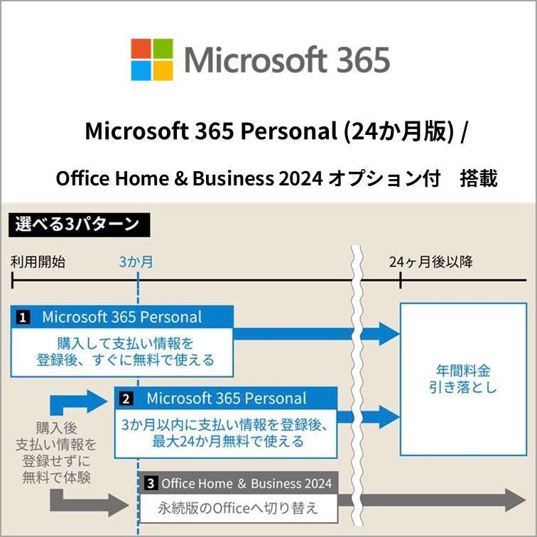 Officeソフト Microsoft 365 Personal (24か月版) /Office Home & Business 2024 オプション付