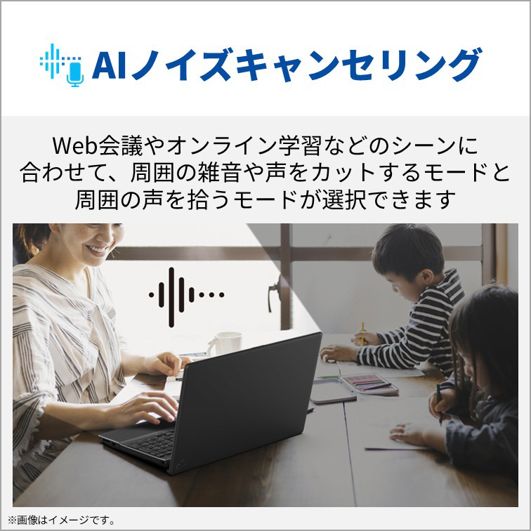 ・AIエンジンが周囲のノイズを消してくれるので、周囲の物音に気をつかうことなく会話に集中できます。パソコン本体のマイクやスピーカーだけでなく、外付けのヘッドセットなどにも対応しています。