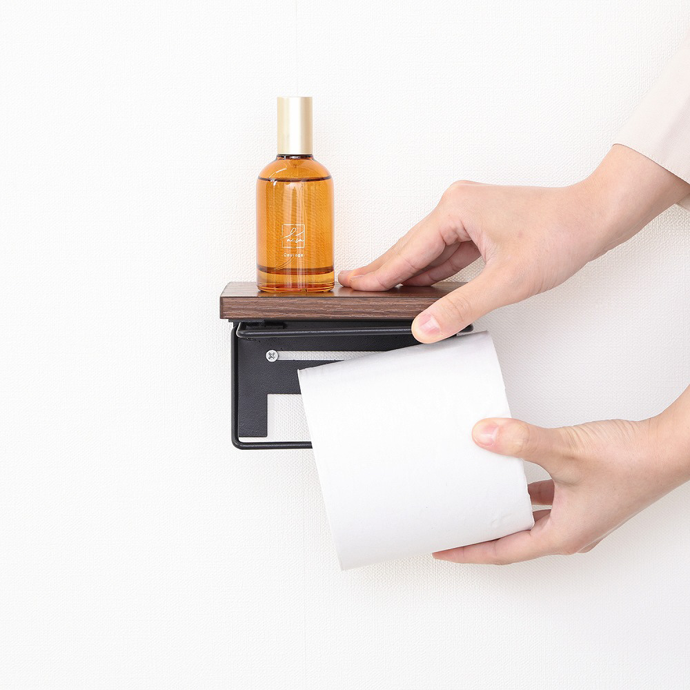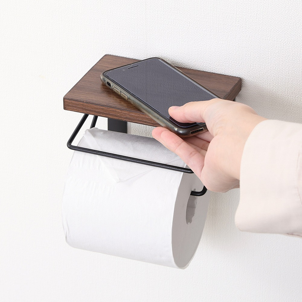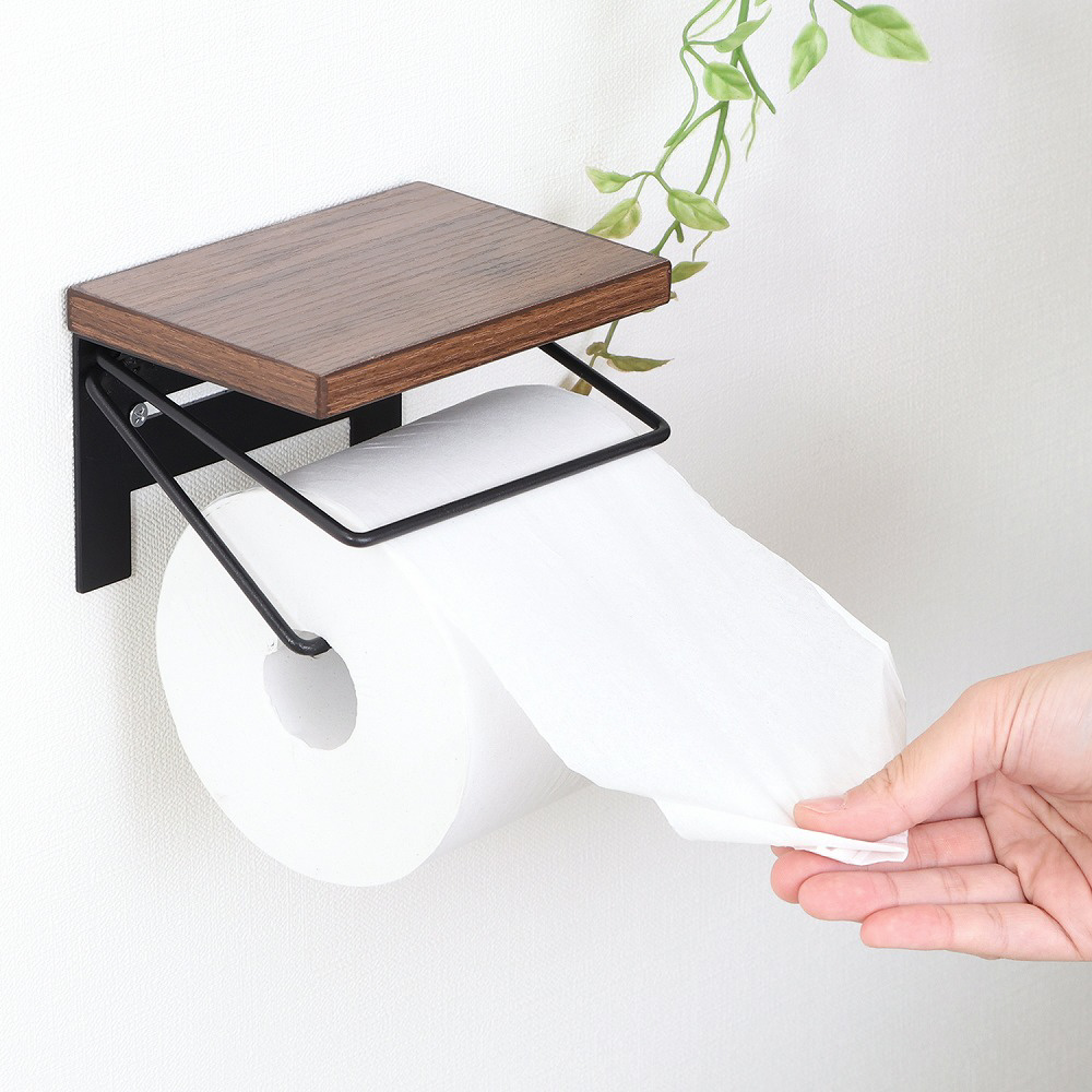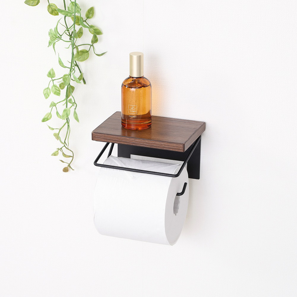 トイレットペーパーホルダー ※1ロール(W14×D10×H9cm) ブラウン×ブラック 38994
