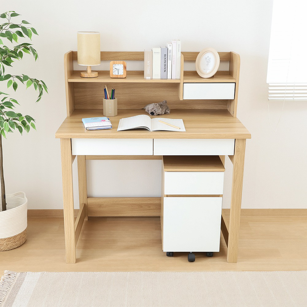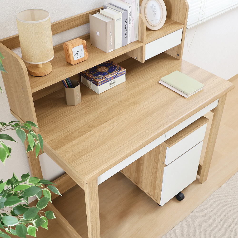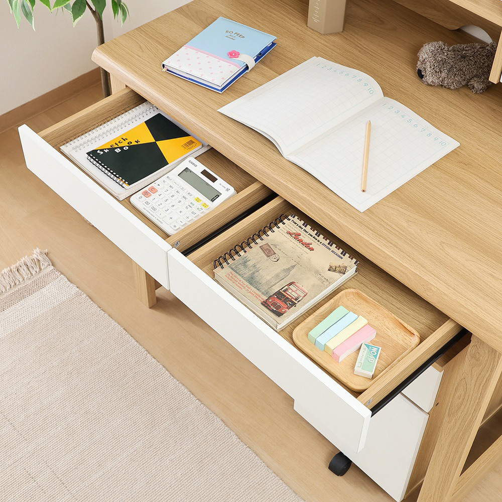 教材や文具を整理しやすいワイドな引き出しで、机上を常にすっきり保てます。