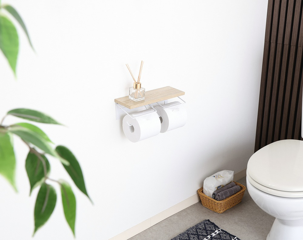 木目×ワイヤーのおしゃれなトイレットペーパーホルダー ダブル