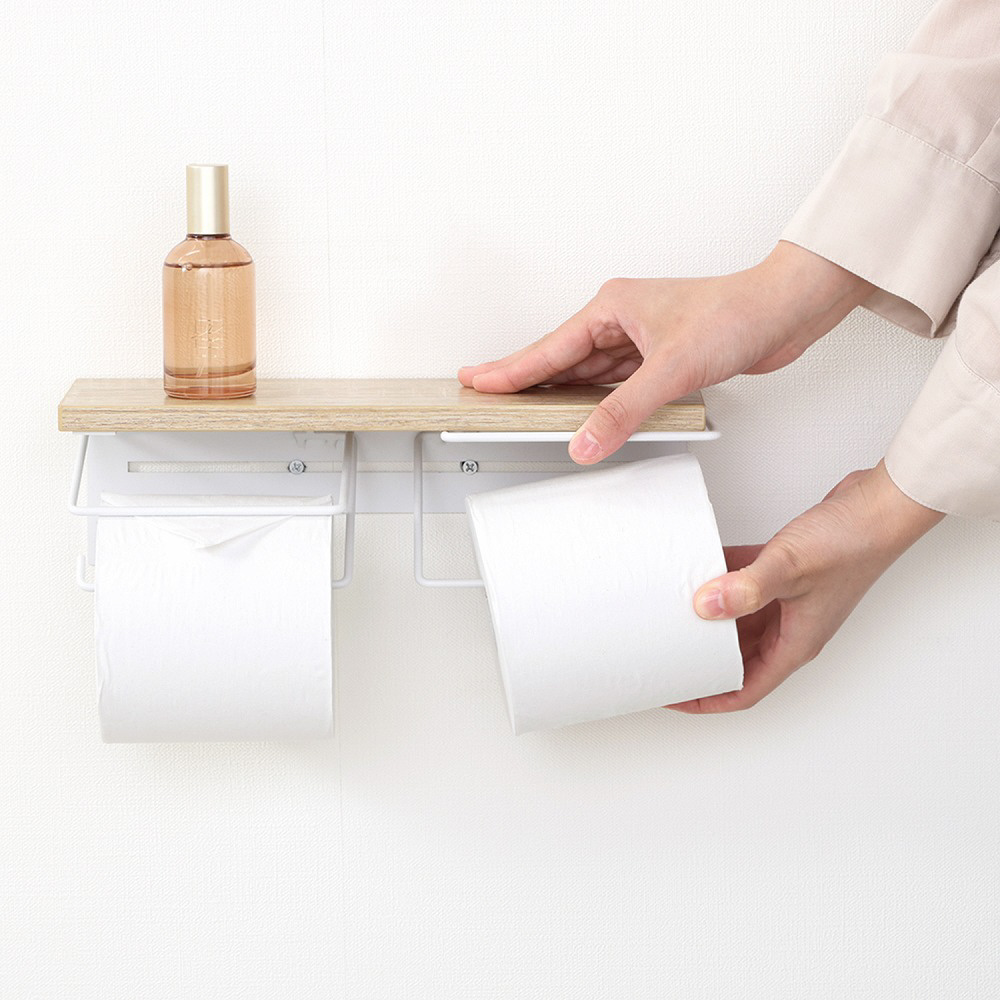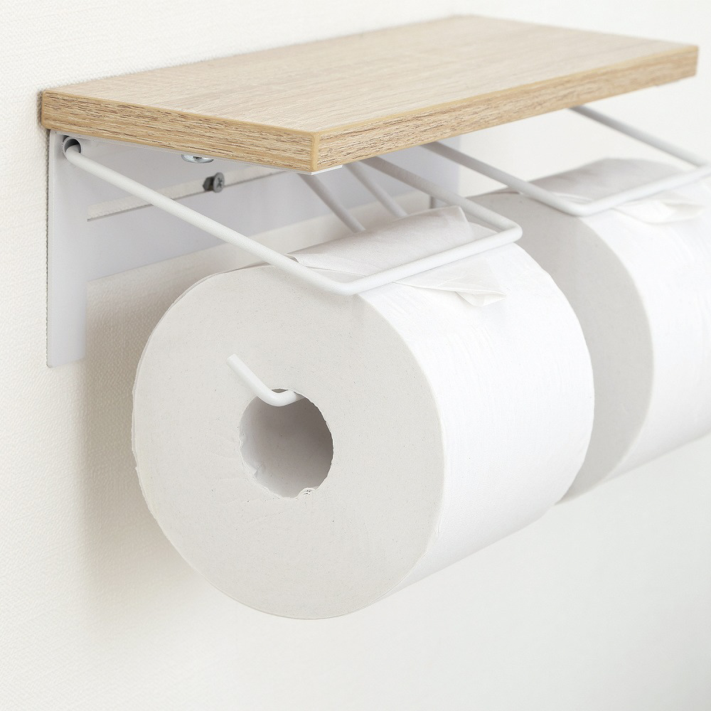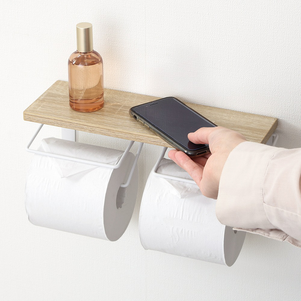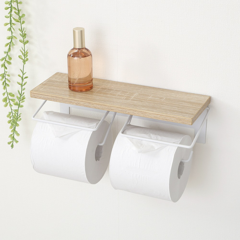 トイレットペーパーホルダー ※2ロール(W30×D10×H9cm) ナチュラル×ホワイト 38995