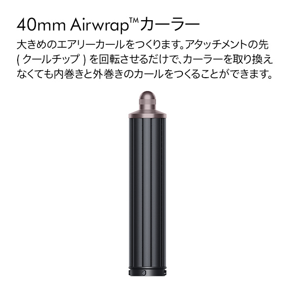 付属品 Conical Airwrapカーラー 、40mm Airwrapカーラー、スムージング ループブラシ、スムージングドライヤー、 収納バッグ、フィルタークリーニングブラシ