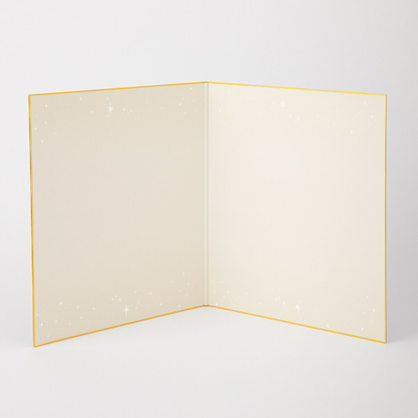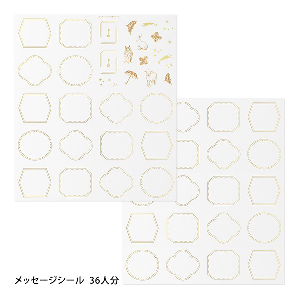 ・内容:スリーブケース×1個、色紙×1枚、シール(金箔押し)×1シート(記入用シール36枚+コーナー用シール4枚) ・サイズ:スリーブケース/H300×W250×D2mm、パッケージ/H305×W260×D9mm、色紙/閉じた状態:H272×W242mm、開いた状態:H272×W485mm