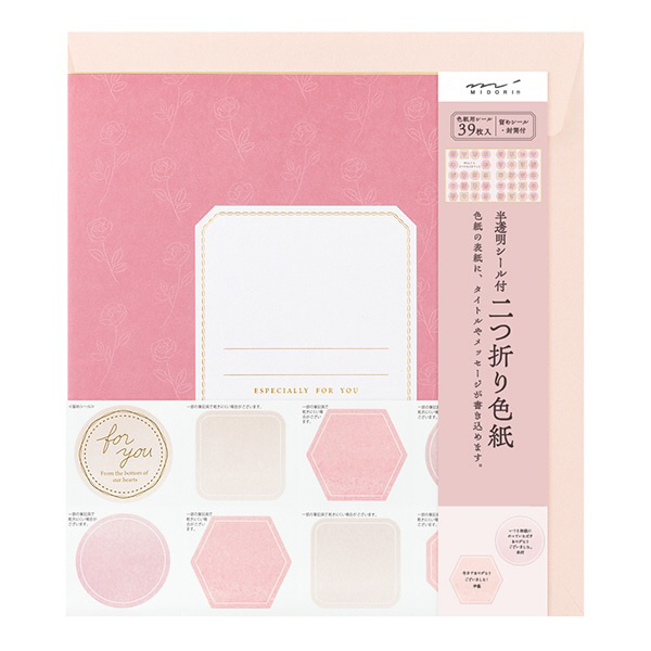 カラー色紙 二つ折り シール・封筒付 半透明 ピンク 33282006