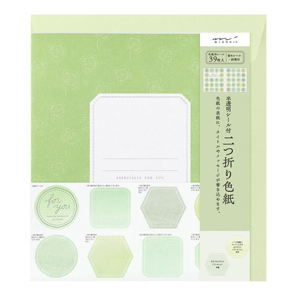 カラー色紙 二つ折り シール・封筒付 半透明 緑 33284006