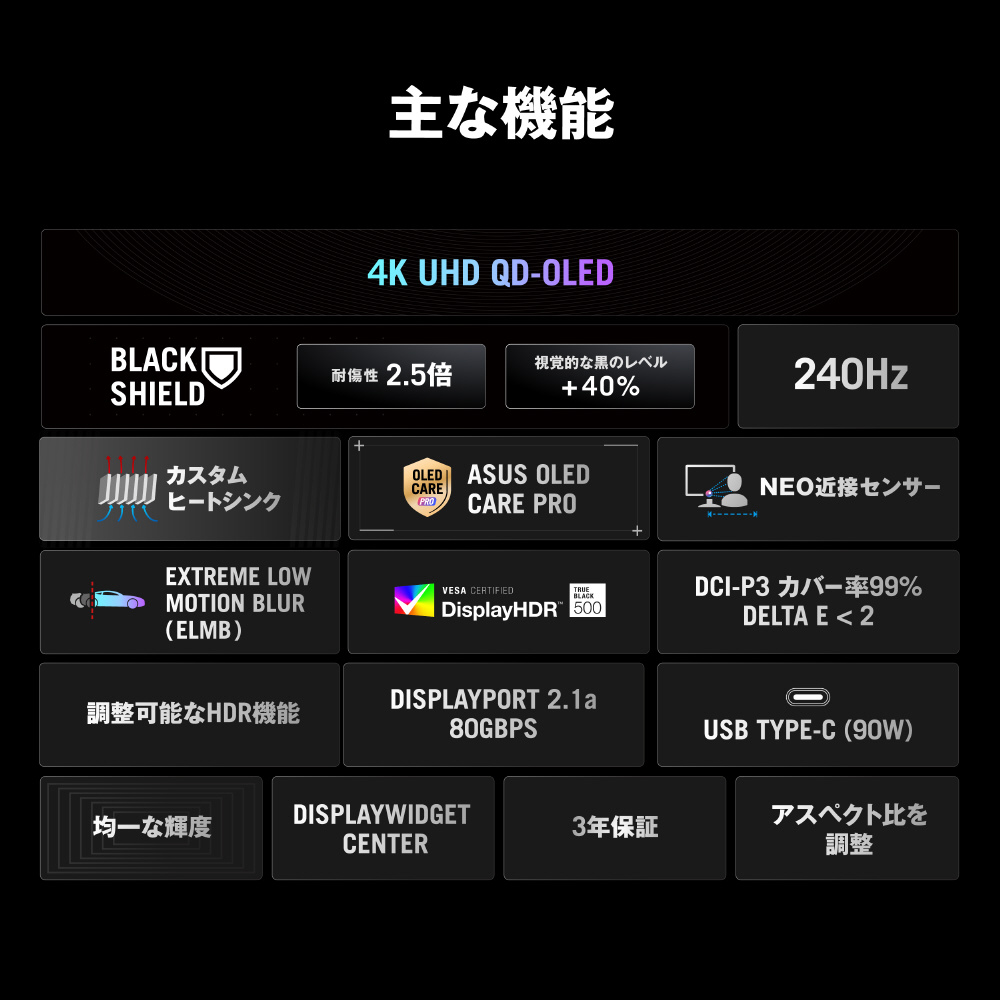 31.5インチ 4K(3840 x 2160)QD-OLEDゲーミングモニター、リフレッシュレート240Hz、応答速度0.03ms