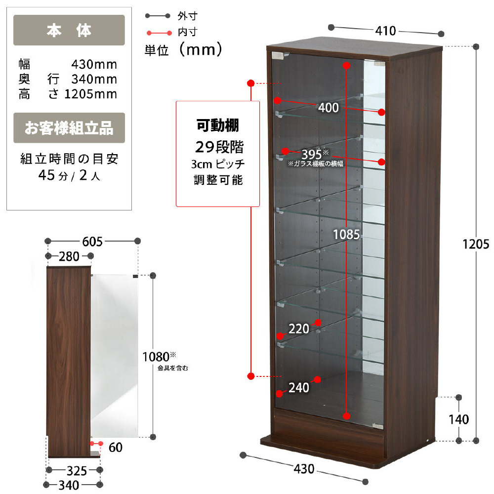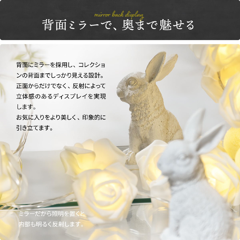 背面にミラーを採用し、コレクションの背面までしっかり見える設計。