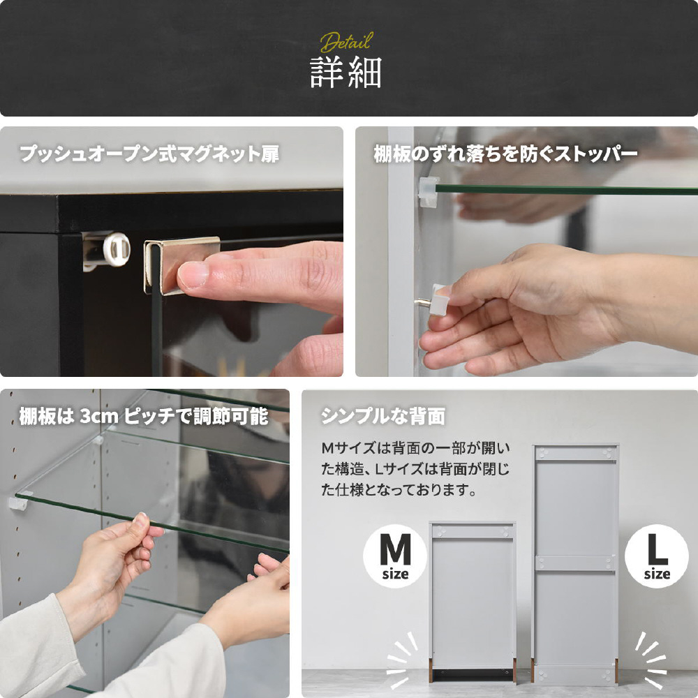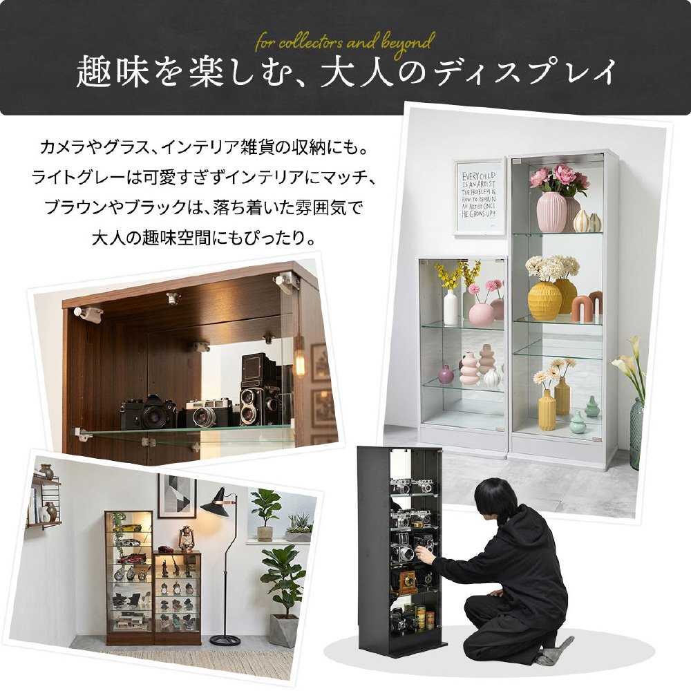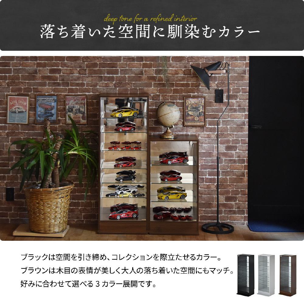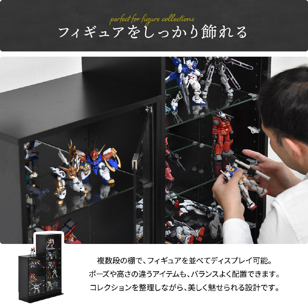 棚板や扉には強化ガラスを採用。大切なコレクションをしっかり守ります。