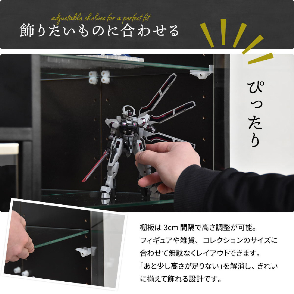 フィギュアや雑貨、コレクションのサイズに合わせて無駄なくレイアウトできます。