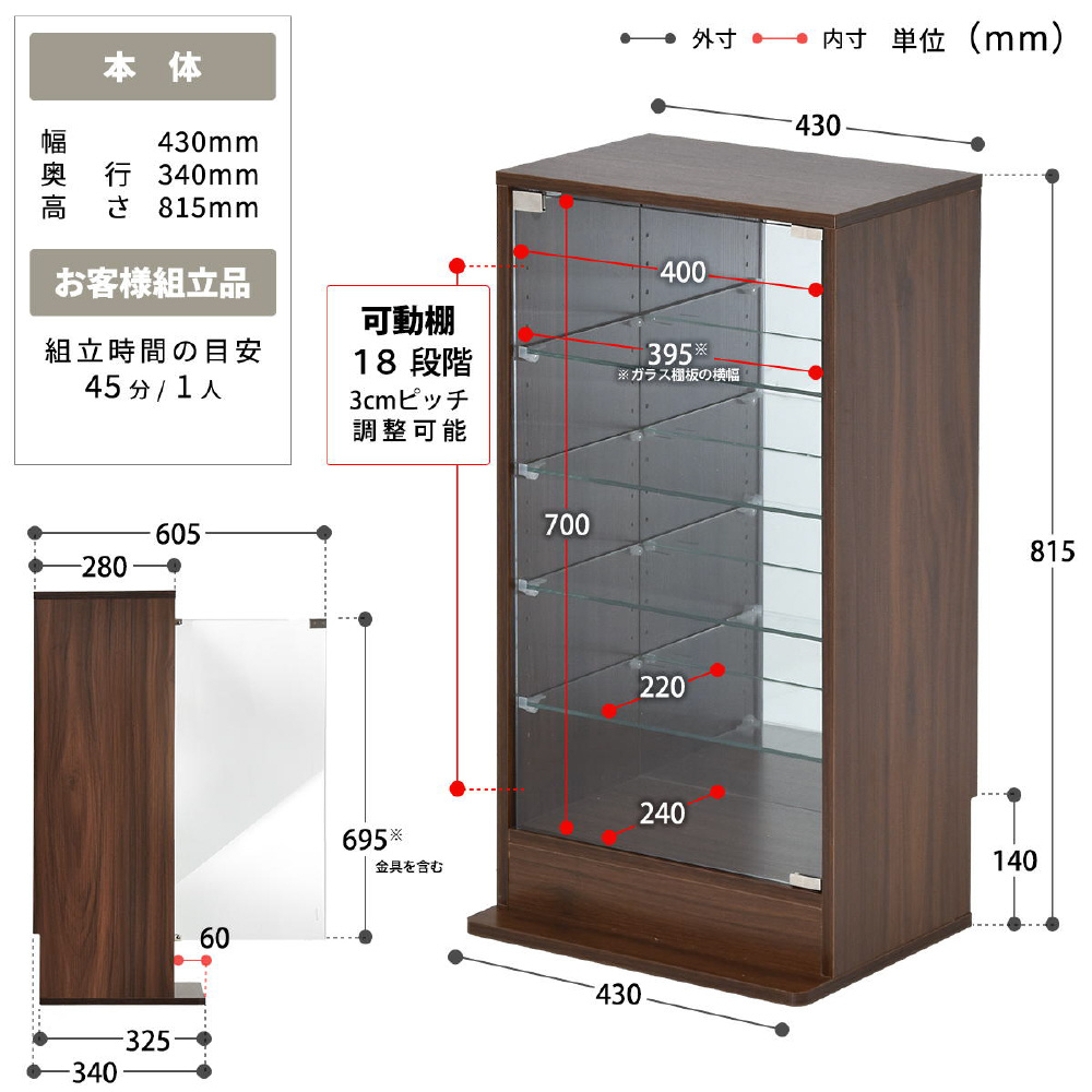 コレクションケース ※Mサイズ(W43×D34×H81.5cm) ブラウン ONLS0416MOBRN