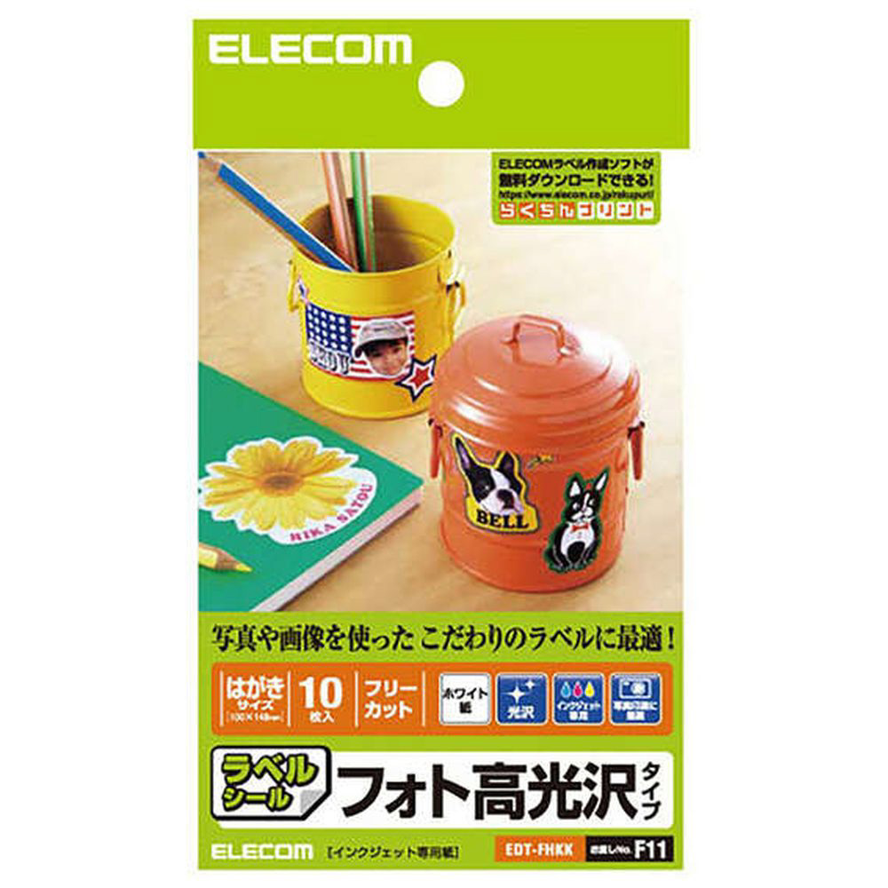 〔インクジェット〕ラベルシール フォト光沢紙タイプ フリーカット ホワイト EDT-FHKK [はがき /10シート /1面 /光沢]