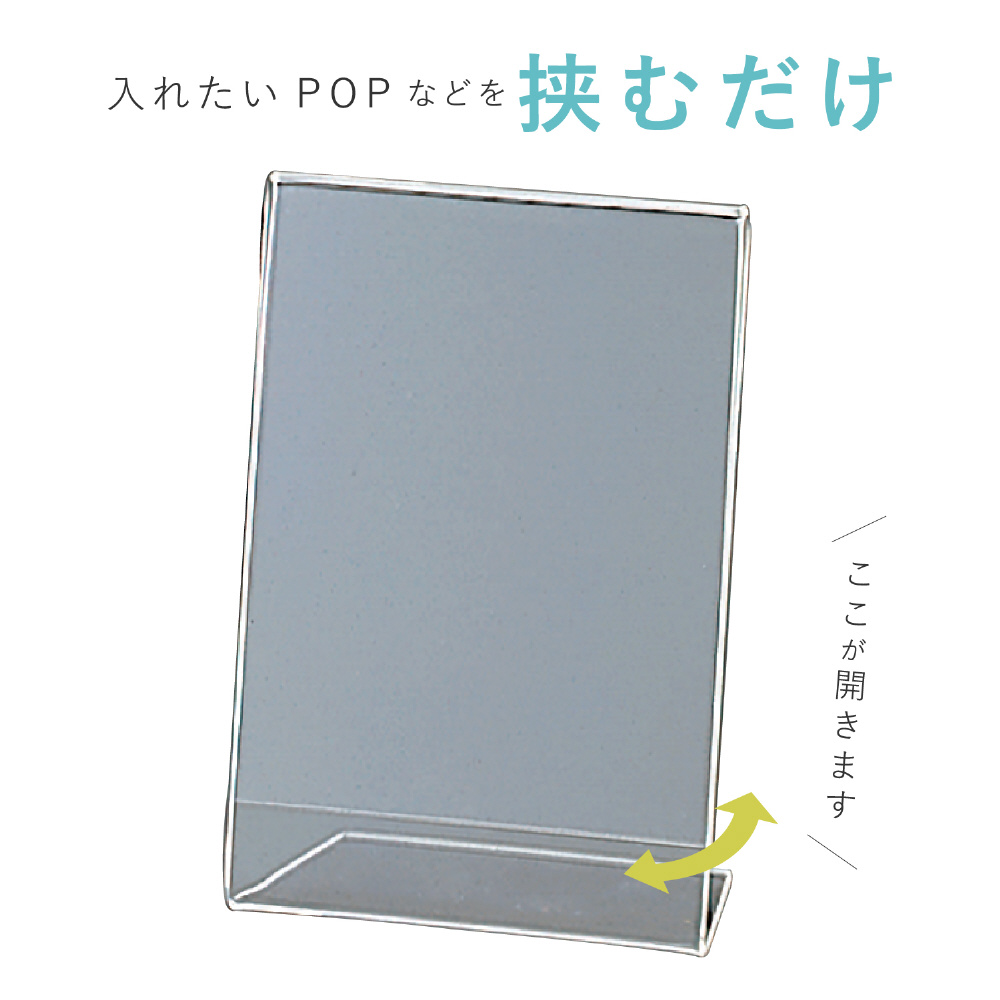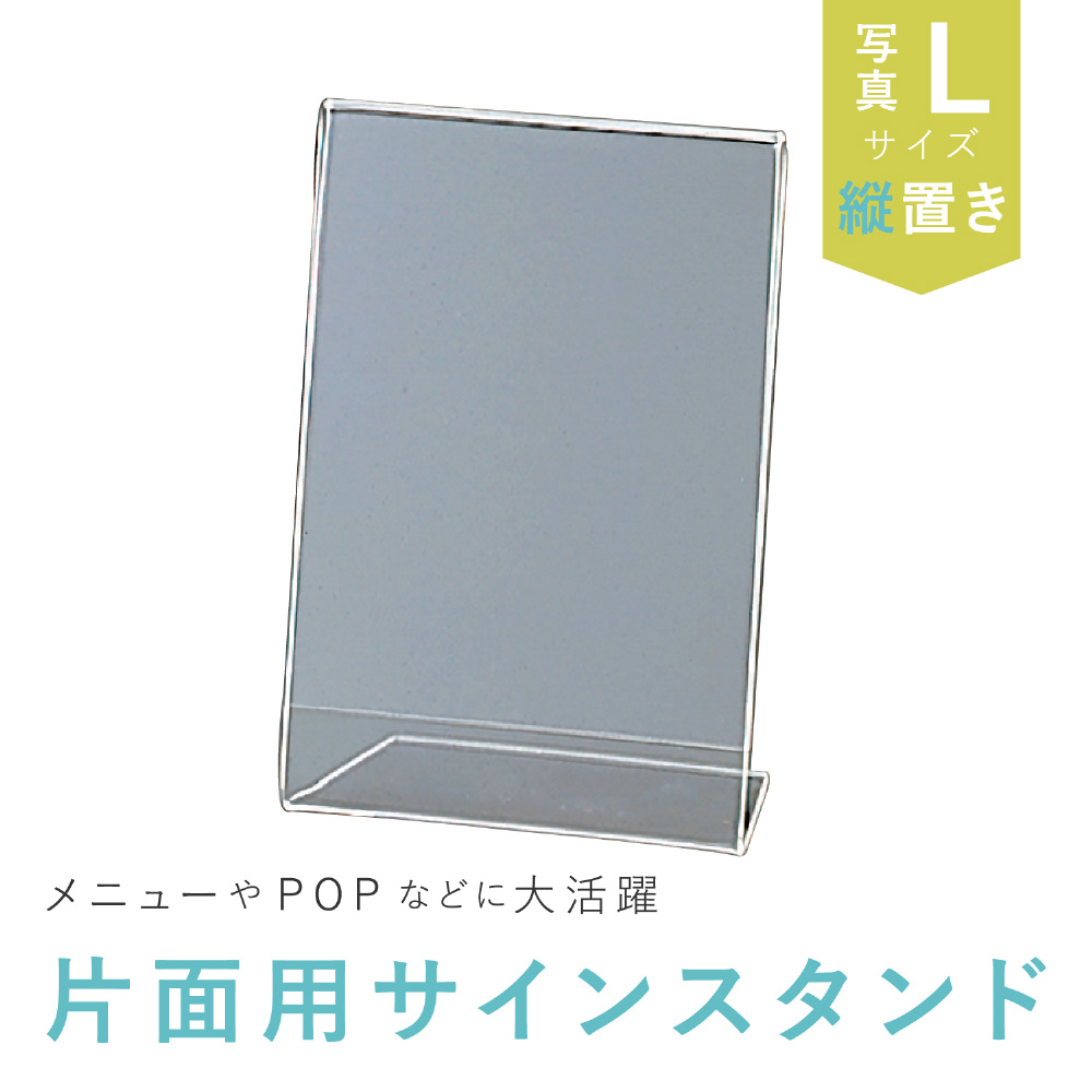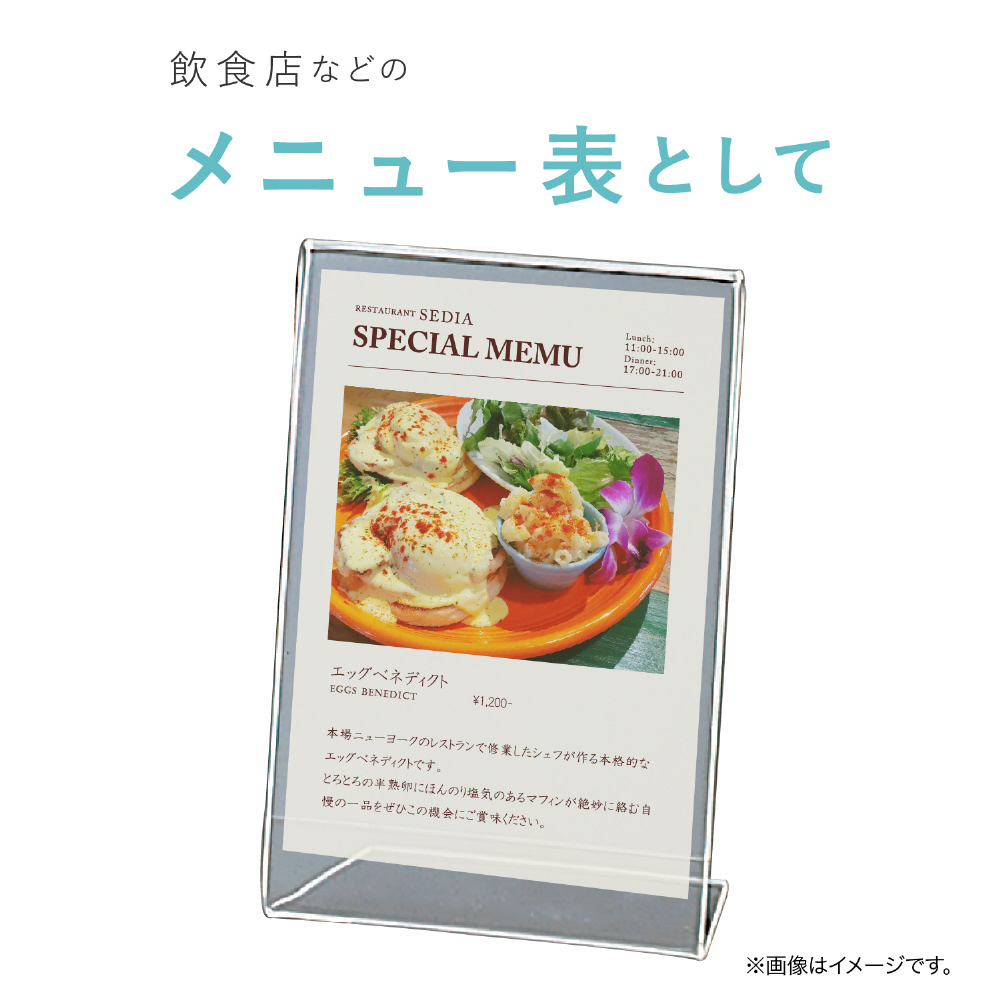 中身を鮮やかに見せる、アクリル製の片面用サインスタンドです。