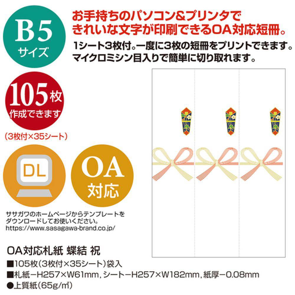 ■プリンター対応の札紙。一般祝事の蝶結びです。1シート3枚付。