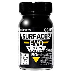 サーフェイサーエヴォシリーズのブラックです。模型の表面にある細かいキズを埋めたり、表面を均一にすることで塗装の仕上がりを美しくするために使用する下地用塗料です。レジンキャストにも使用できます。プライマー効果もありますので、塗料の食いつきも良くなります。溶きパテというより塗料に近い感覚のサーフェイサーです。塗料と同じ比率で薄めてお使いください。 黒はメタリックカラーの下地としてそのまま使うこともできます。