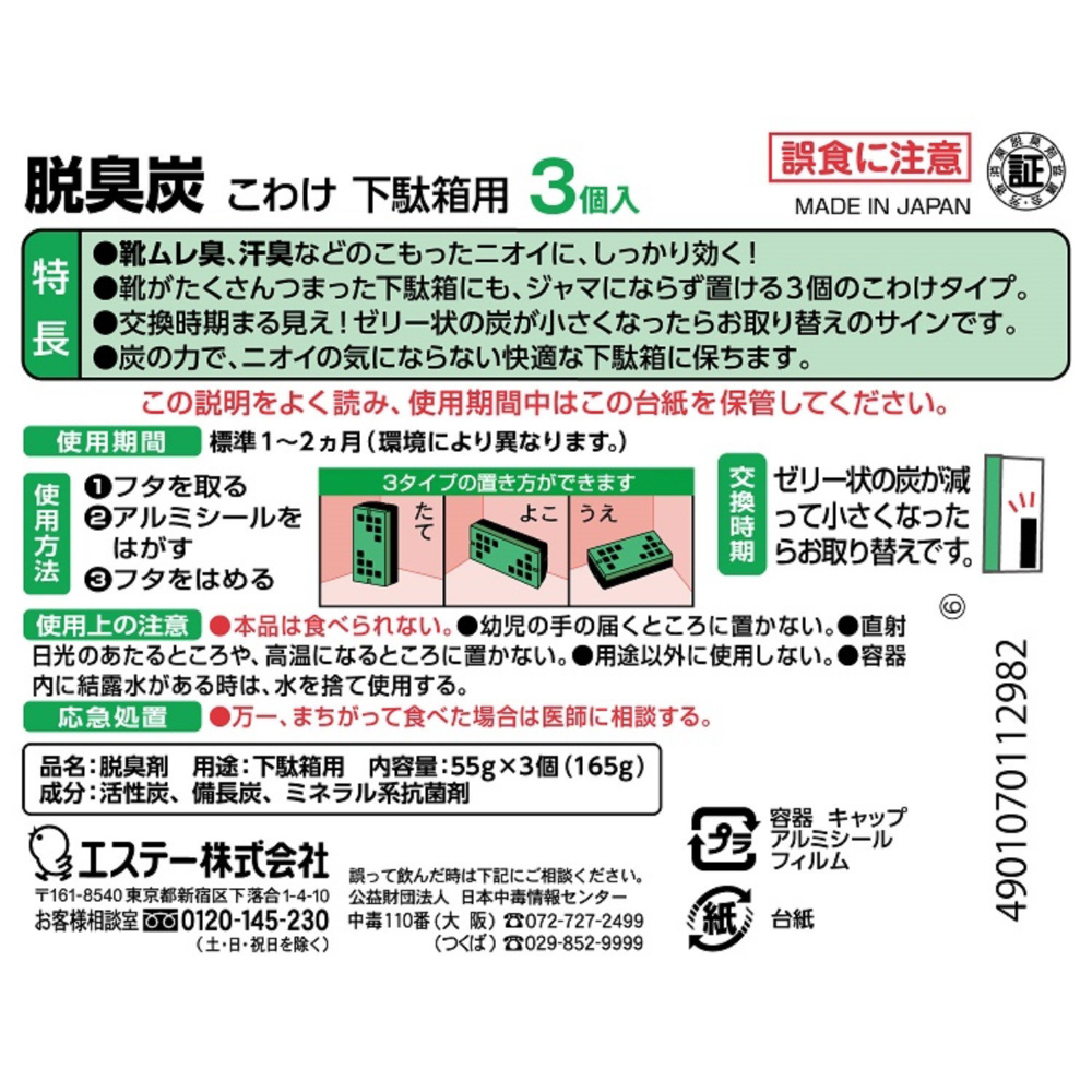 脱臭炭 こわけ 下駄箱用 靴箱用 脱臭剤 55g×3個入
