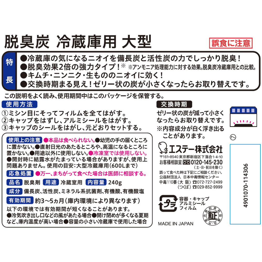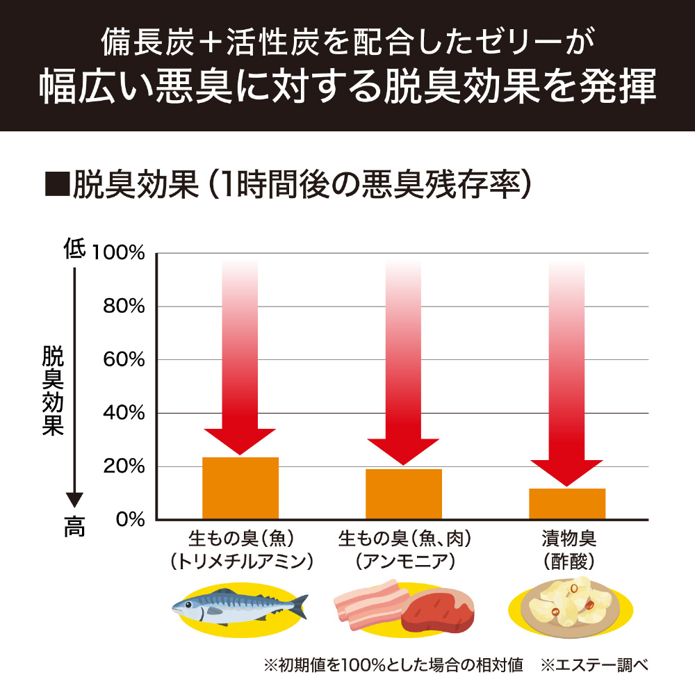 ●強力脱臭 当社独自のゼリー状の炭(強化備長炭+活性炭)●ゼリー状の炭が小さくなったらお取り替えです。●キムチ臭・ニンニク臭にも効く!