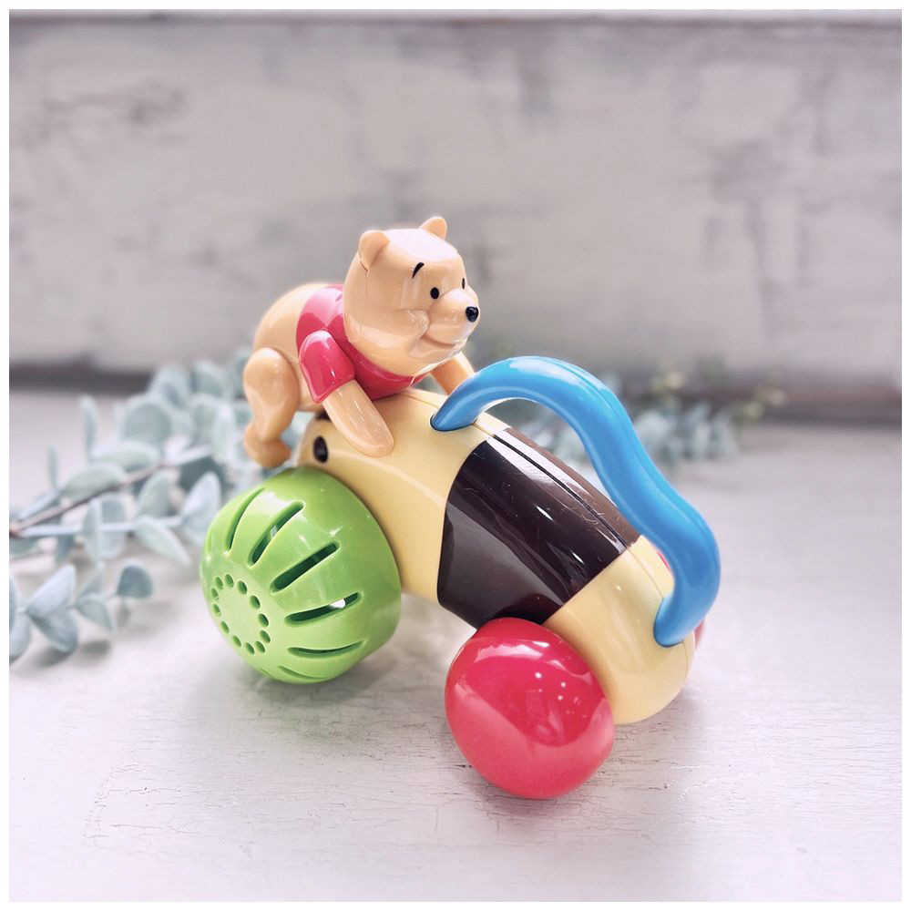 赤ちゃんが遊びやすい、くまのプーさんの取っ手つき手転がしおもちゃです。