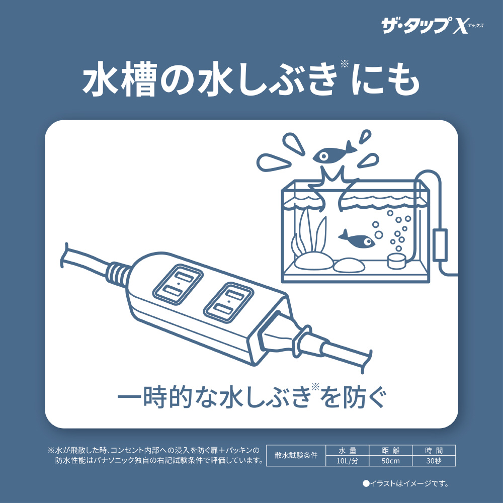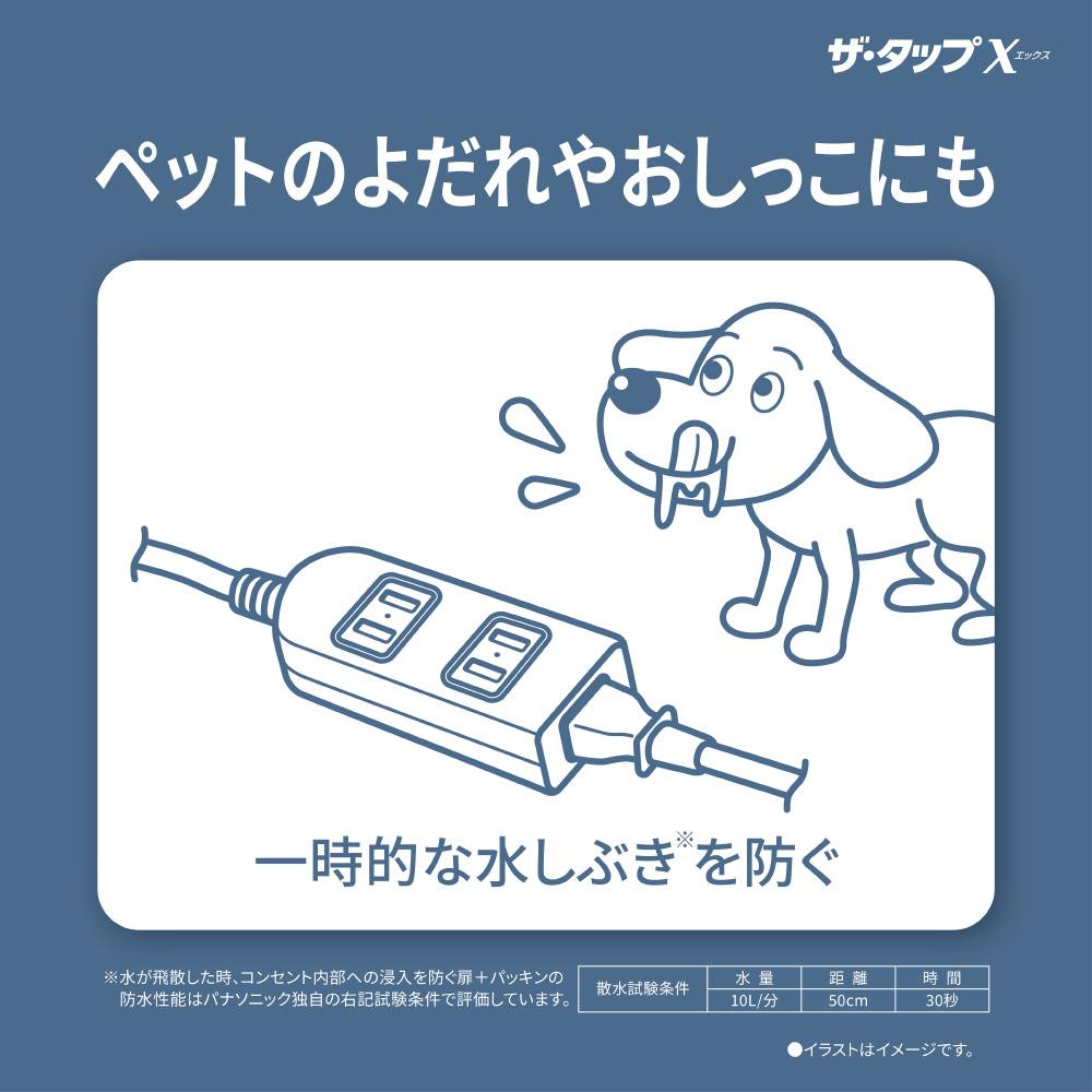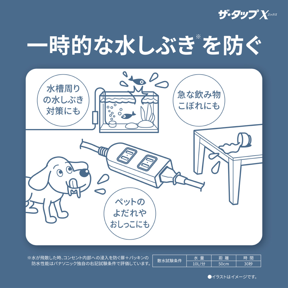 一時的な水しぶき・ホコリの侵入をガードする「防水扉」「一括防水スイッチ」付。