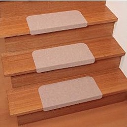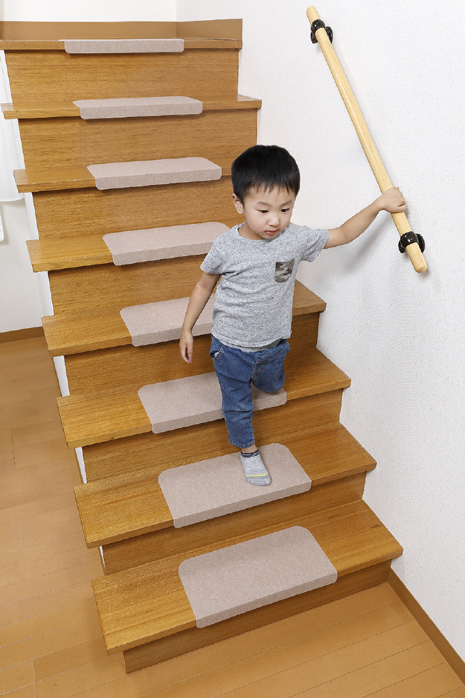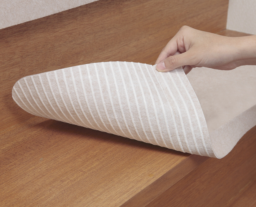 おくだけで吸着する、折り曲げ付きの足裏にやさしい階段用マットです。
