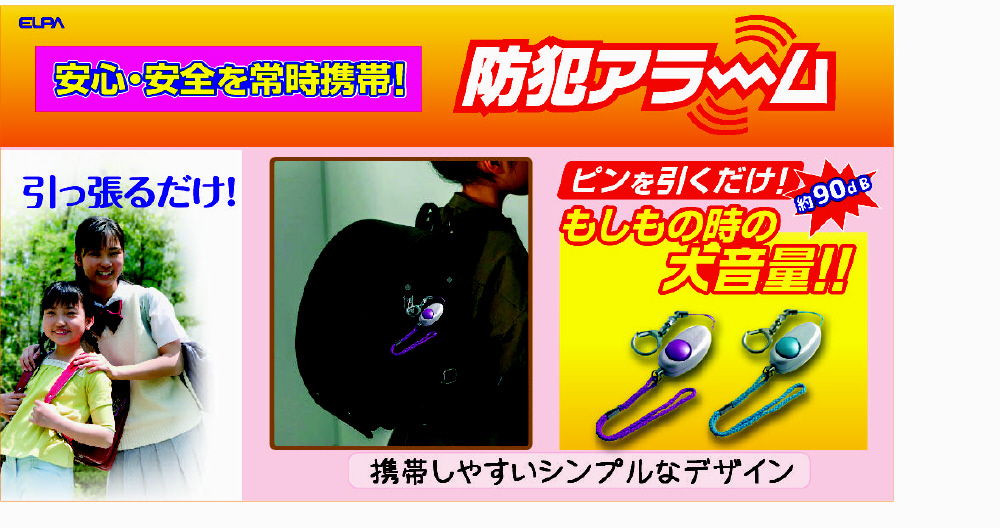 仕様 ■使用電池:アルカリボタン電池LR44X2個(テスト用付属) ■電池寿命:アラーム連続 約50分 ■音量:約90dB/50cm ■本体サイズ:(約)H49XW24XD21(mm) ■重量:約23g(電池含む) ■カラー:ブルー