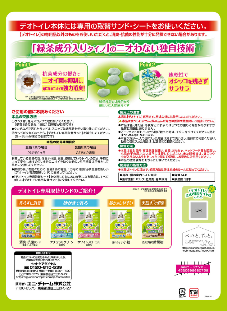 デオトイレ 緑茶成分入り 消臭・抗菌サンド 4L