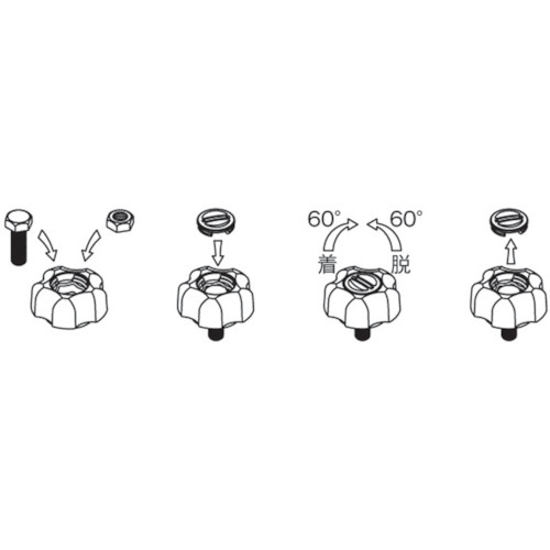 フィットノブ M6 本体/黒 キャップ/青 (5個入り) FITKM6B5P