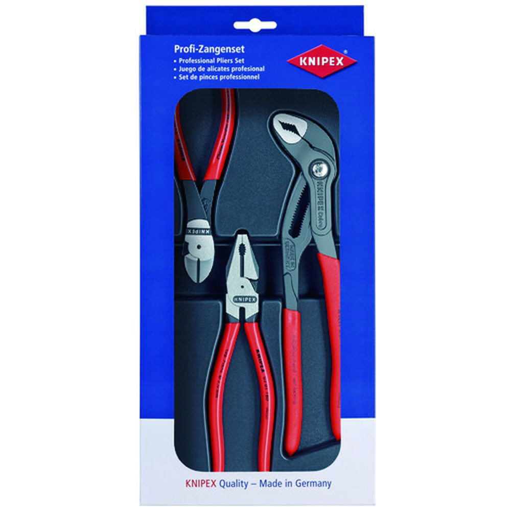 強力型ペンチ、強力型斜ニッパー、ウォーターポンププライヤー「コブラ」が各1本入ったセットです。