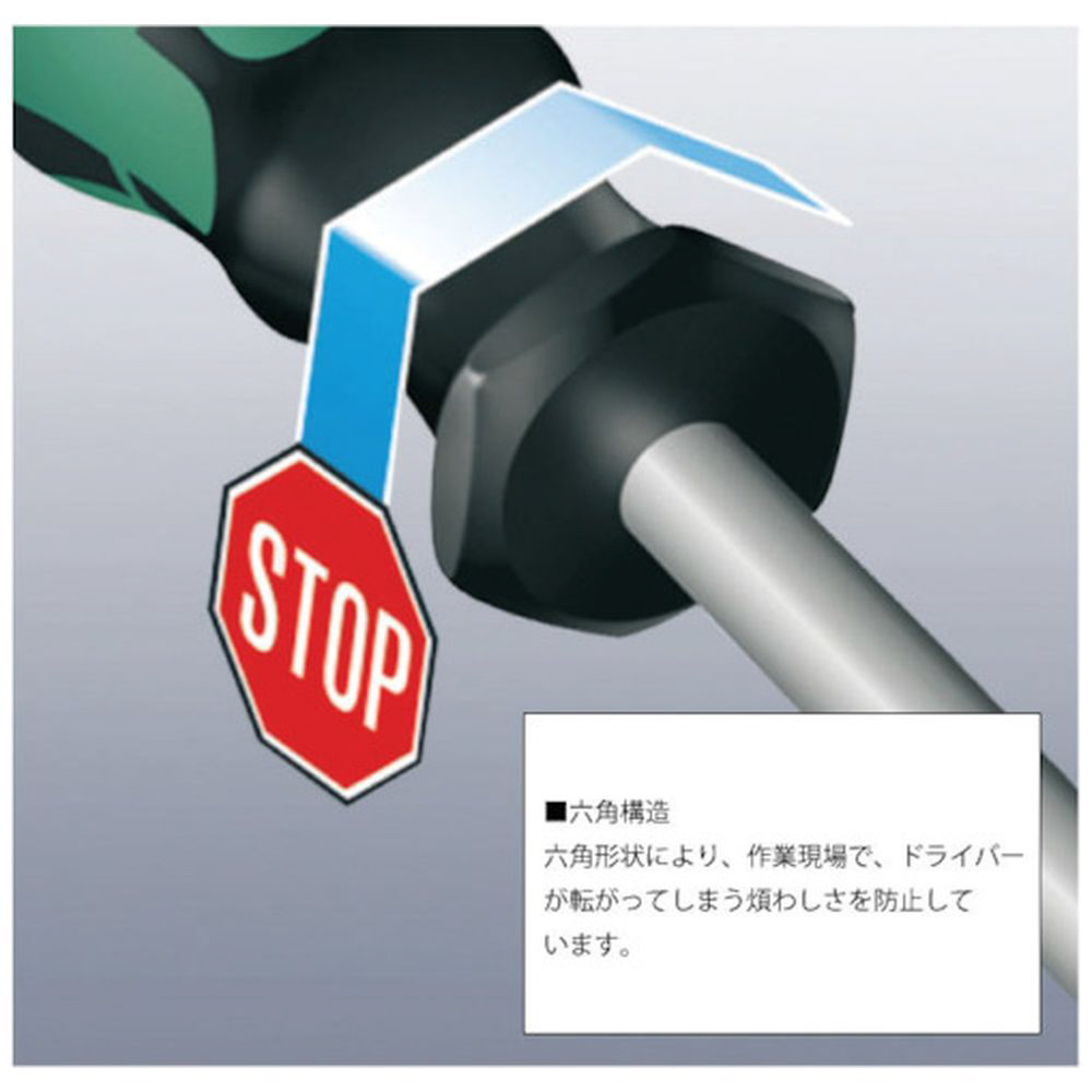 ■ハンドルの下端には転がり防止機能付きです。(六角形)