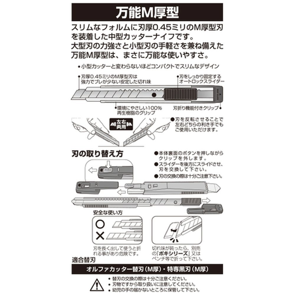 ■スリムなフォルムに刃厚0.45ミリのM厚刃を装着した、全く新しい規格の中型カッターナイフです。