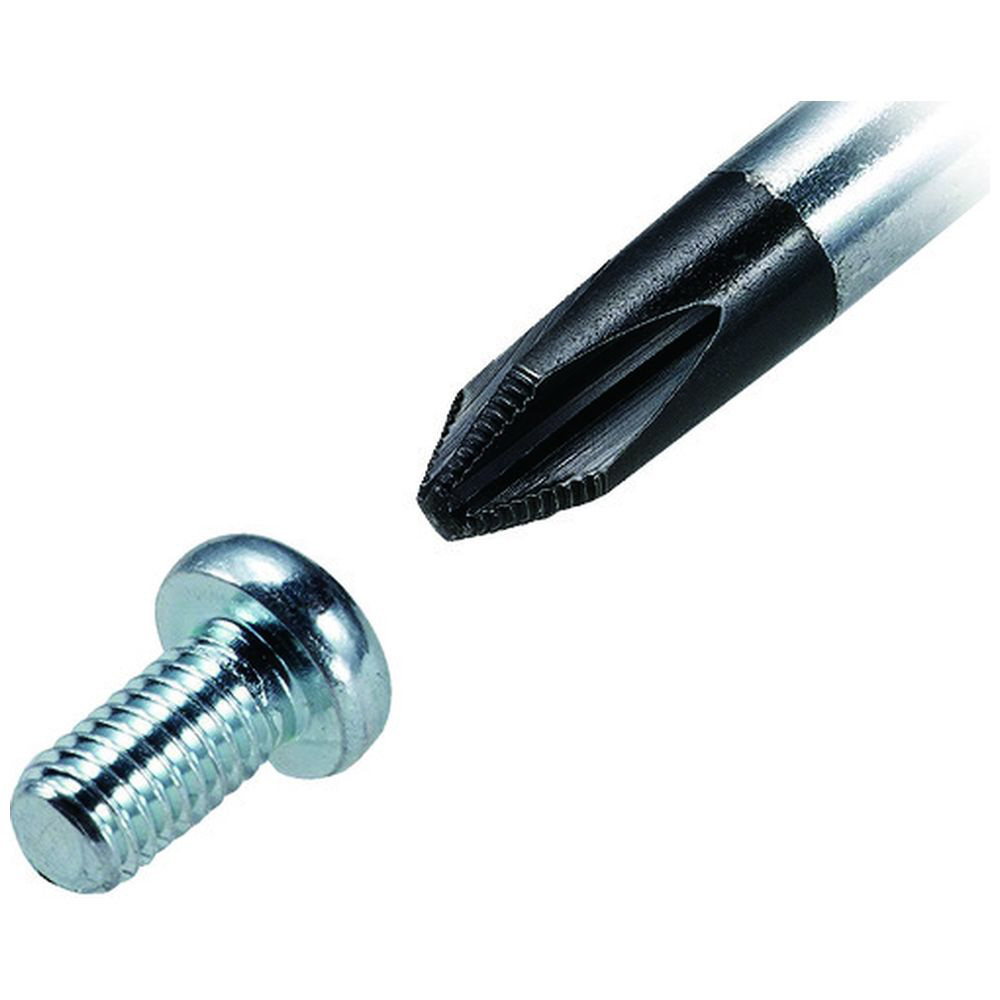 ■プラスの刃先はNewジョーズフィットで、刃先に高強度の金属粒を特殊コーティングし、十字ねじ特有のドライバーの浮き上がり現象〈カムアウト〉を最大限防ぐ刃先チップ形状になっています。