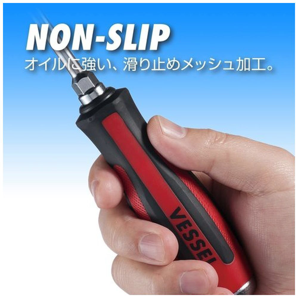 プラスの刃先はNewジョーズフィットで、刃先に高強度の金属粒を特殊コーティングし、十字ねじ特有のドライバーの浮き上がり現象〈カムアウト〉を最大限防ぐ刃先チップ形状になっています。