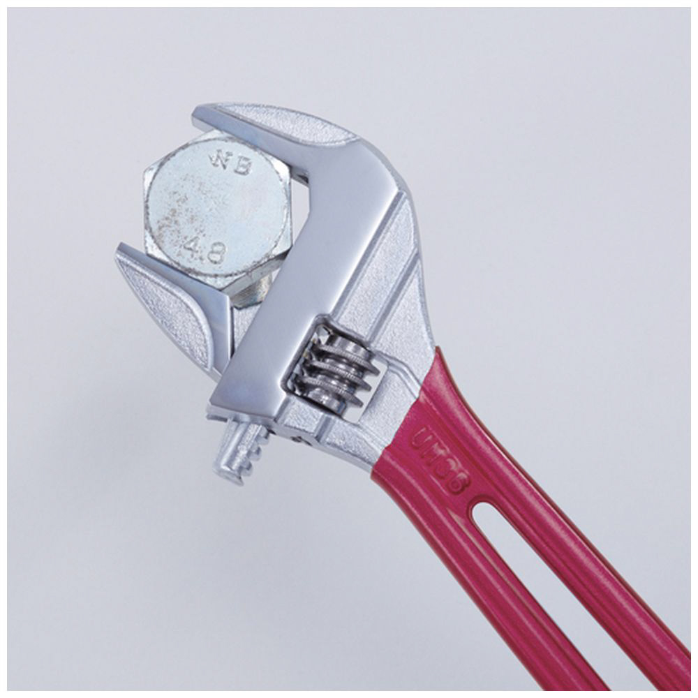 ■通常よりワンサイズ上のボルト・ナットに対応できるワイドな口開きです。
